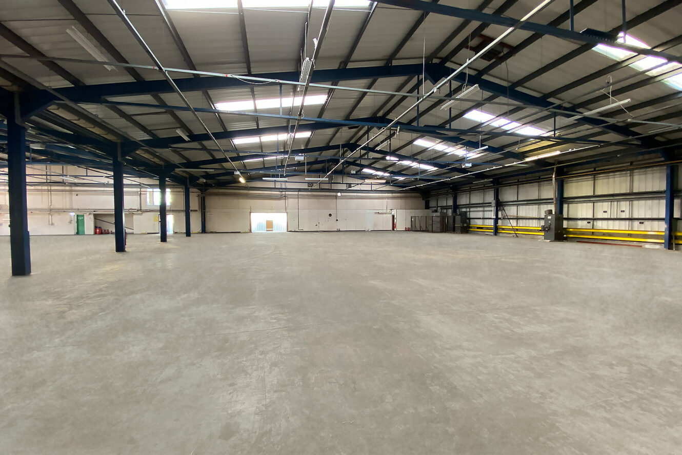 Unit 30 comprises a detached industrial / warehouse unit of steel portal frame and a two pitch roof with translucent roof panels providing natural light into the unit.