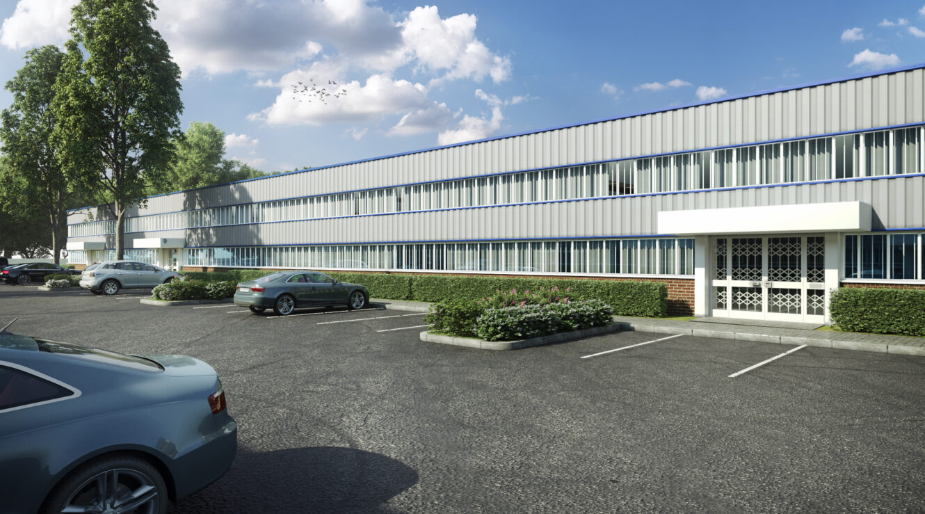 Unit 1 is an End-terrace single-storey Factory/Warehouse with two storey integral Offices to the front. The unit is due to be fully refurbished, to include full decoration throughout and new floor coverings to the Offices. Internally, the property benefits from a mixture of Private and Open-Plan Offices, with suspended ceilings incorporating inset fluorescent lighting. The Gross Internal Area (GIA) extends to approximately 11,954 sq ft (1,110.5 sq m). The unit benefits from a minimum working height of 18’10” (5.75 m). Externally, the unit benefits from a gated, concrete-surfaced Yard, providing access to a loading door to the rear. Communal parking is provided within the Estate.