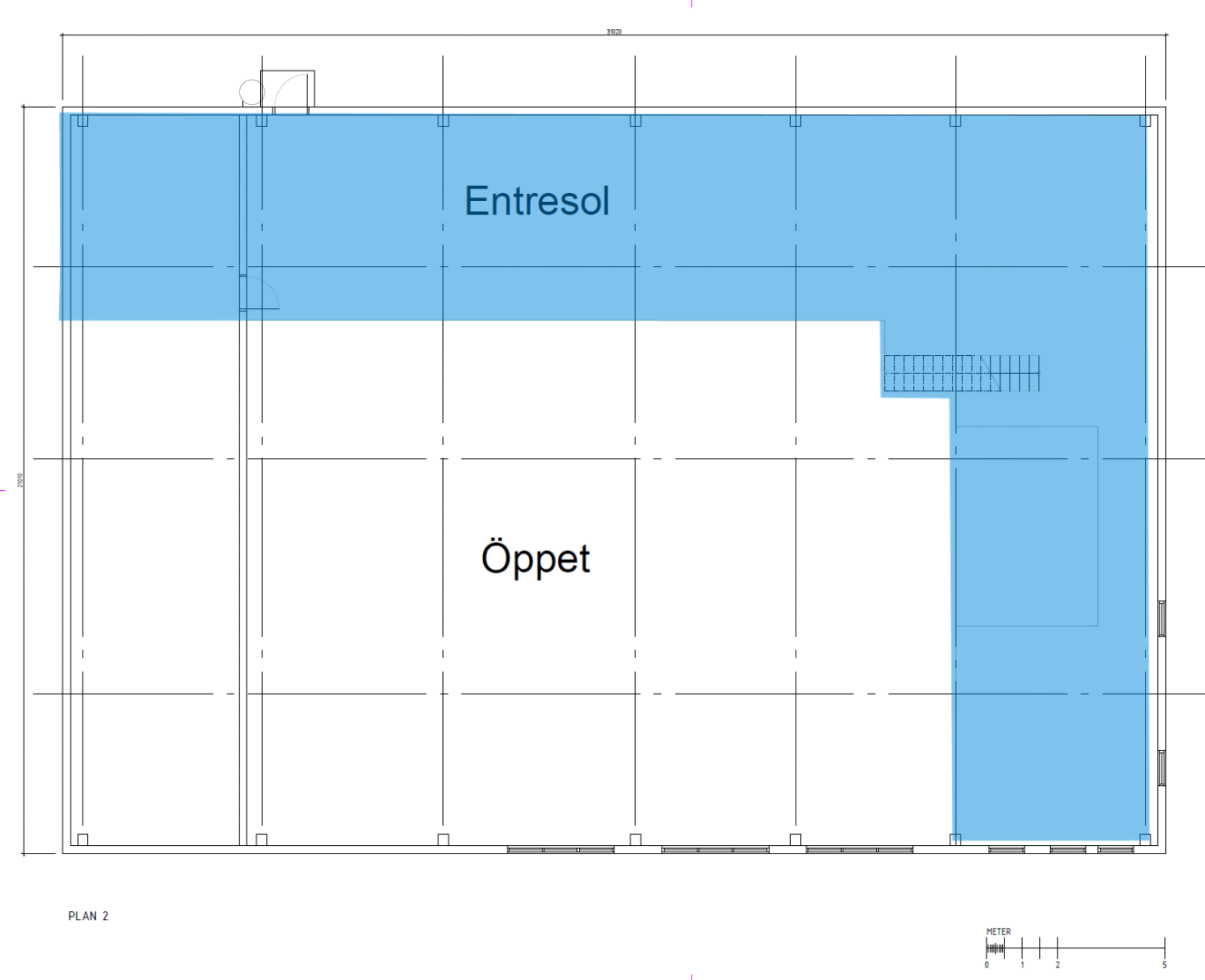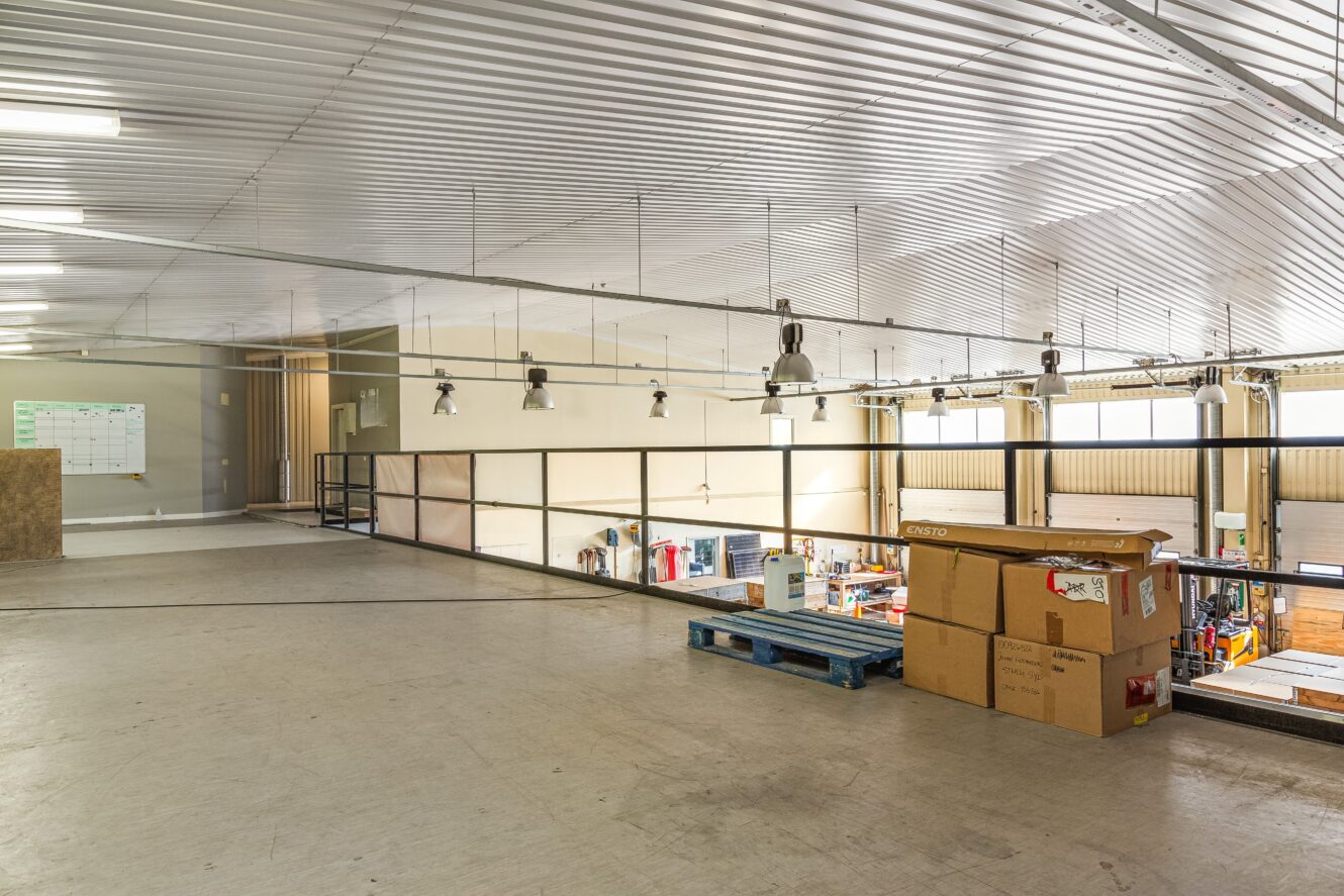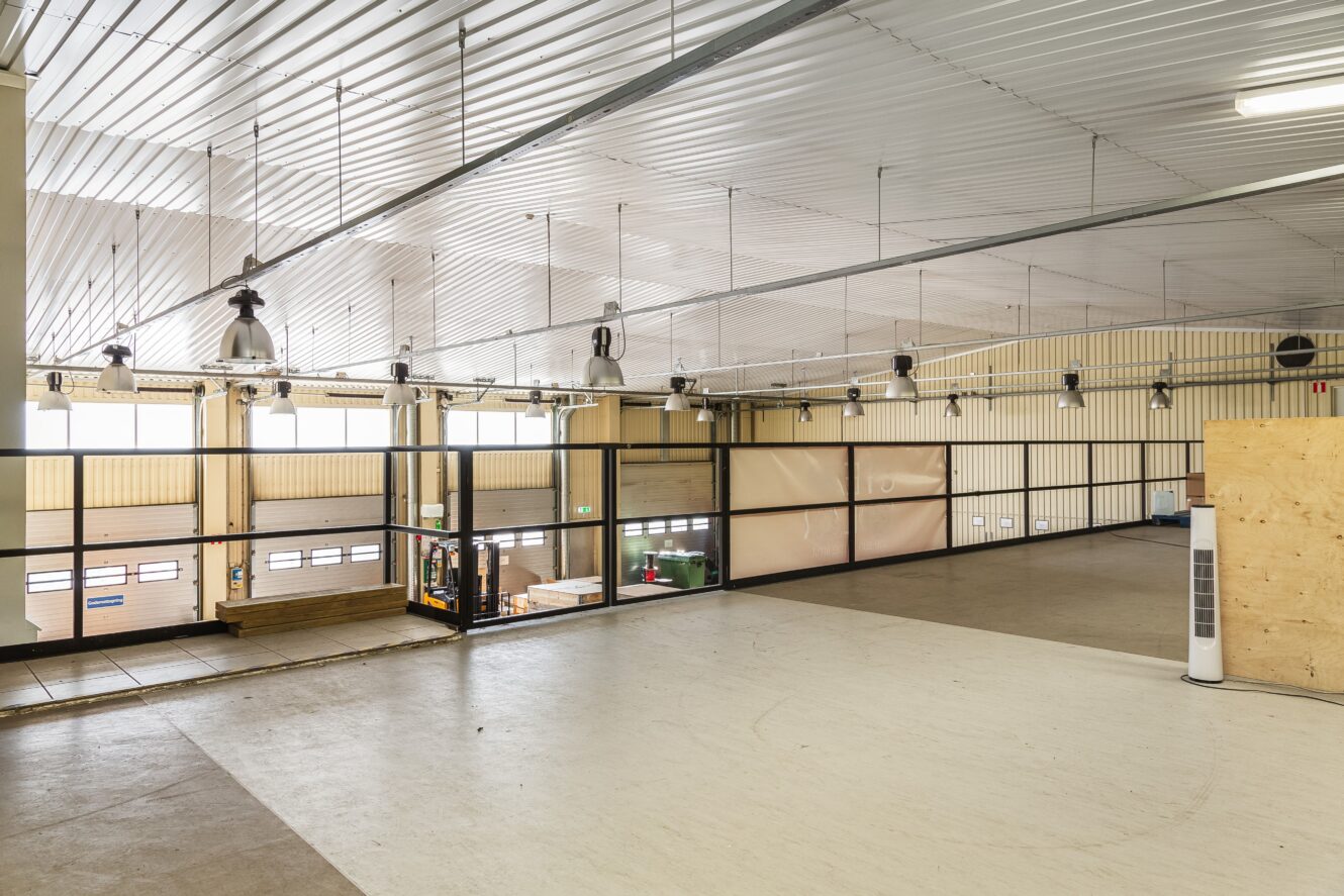 Kontorsdelen på plan ett erbjuder stor flexibilitet och kan enkelt anpassas efter verksamhetens behov. Lokalen ger därmed goda möjligheter att skräddarsy både lager- och kontorsutrymmen för olika typer av verksamheter.