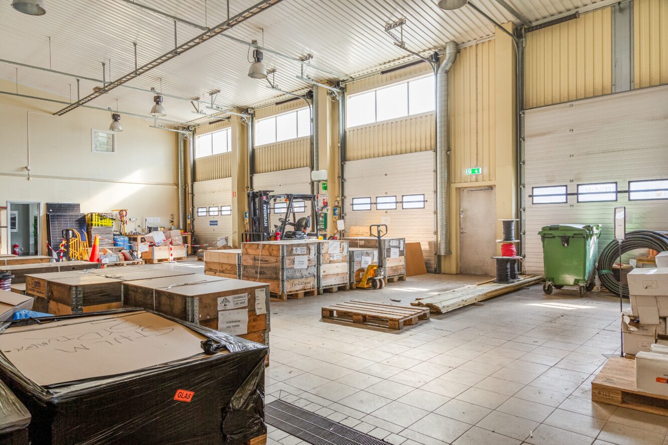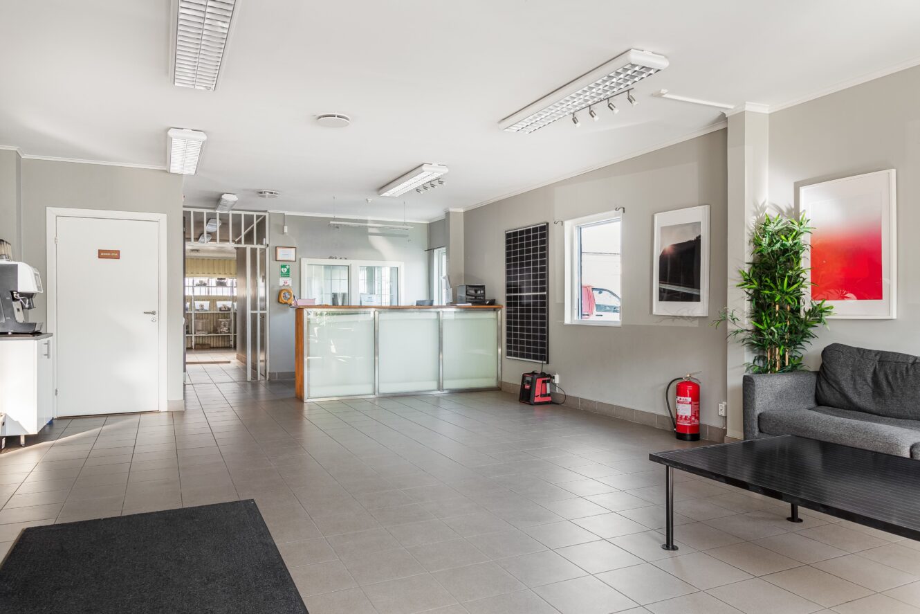 Ledig lager- och kontorslokal om totalt 860 kvm, fördelat på 651 kvm lagerutrymme på bottenplan och 209 kvm kontorsytor samt entresol på plan ett. Lokalen erbjuder rymliga, öppna lagerytor och fem markportar för effektiv in- och utlastning. Byggnaden är i mycket gott skick och är belägen på en inhägnad fastighet, vilket ger hög säkerhet och avskildhet. Generösa parkeringsmöjligheter finns att hyra.